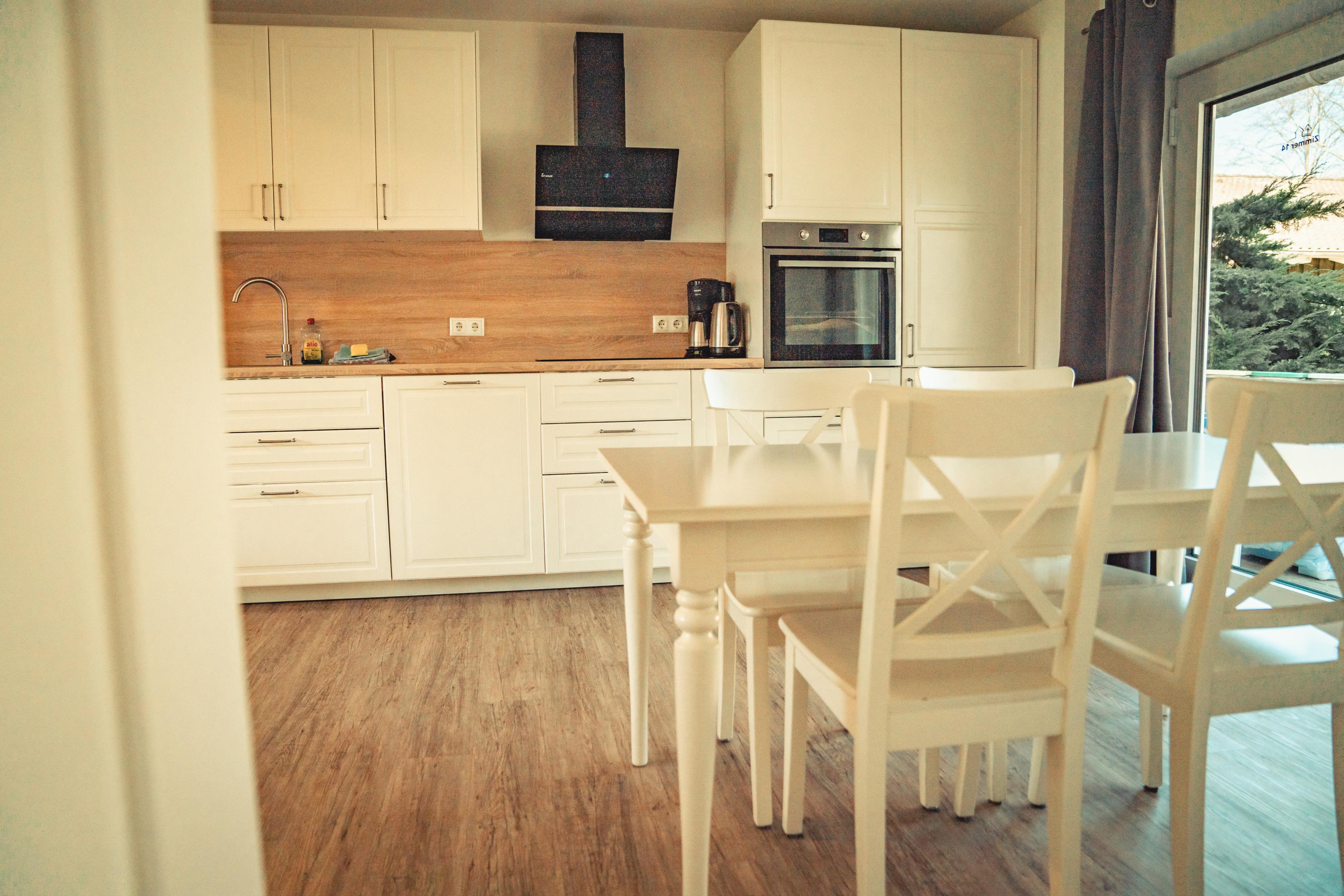 Vollausstattung: Die integrierte Küche lässt mit Geschirrspüler, Backofen und Kaffeemaschine keine Wünsche offen. Ein modernes, bodengleiches Duschbad sowie inklusive Bettwäsche und Handtücher sorgen für einen Rundum-Sorglos-Aufenthalt.