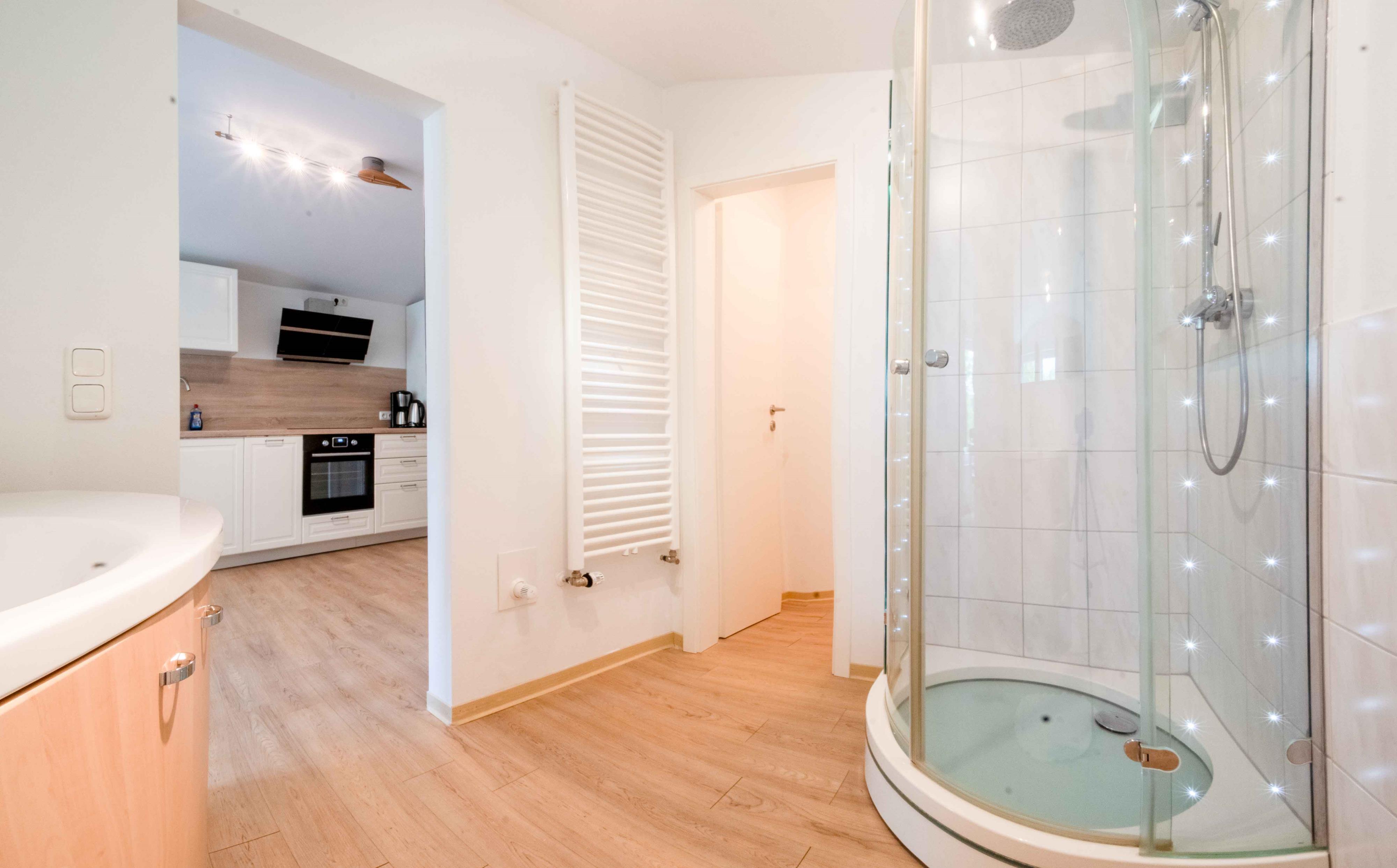 Erholung pur: Genießen Sie die Ruhe der ländlichen Umgebung. Das Badezimmer mit Dusche und WC bietet alles Nötige für einen frischen Start in den Tag.
