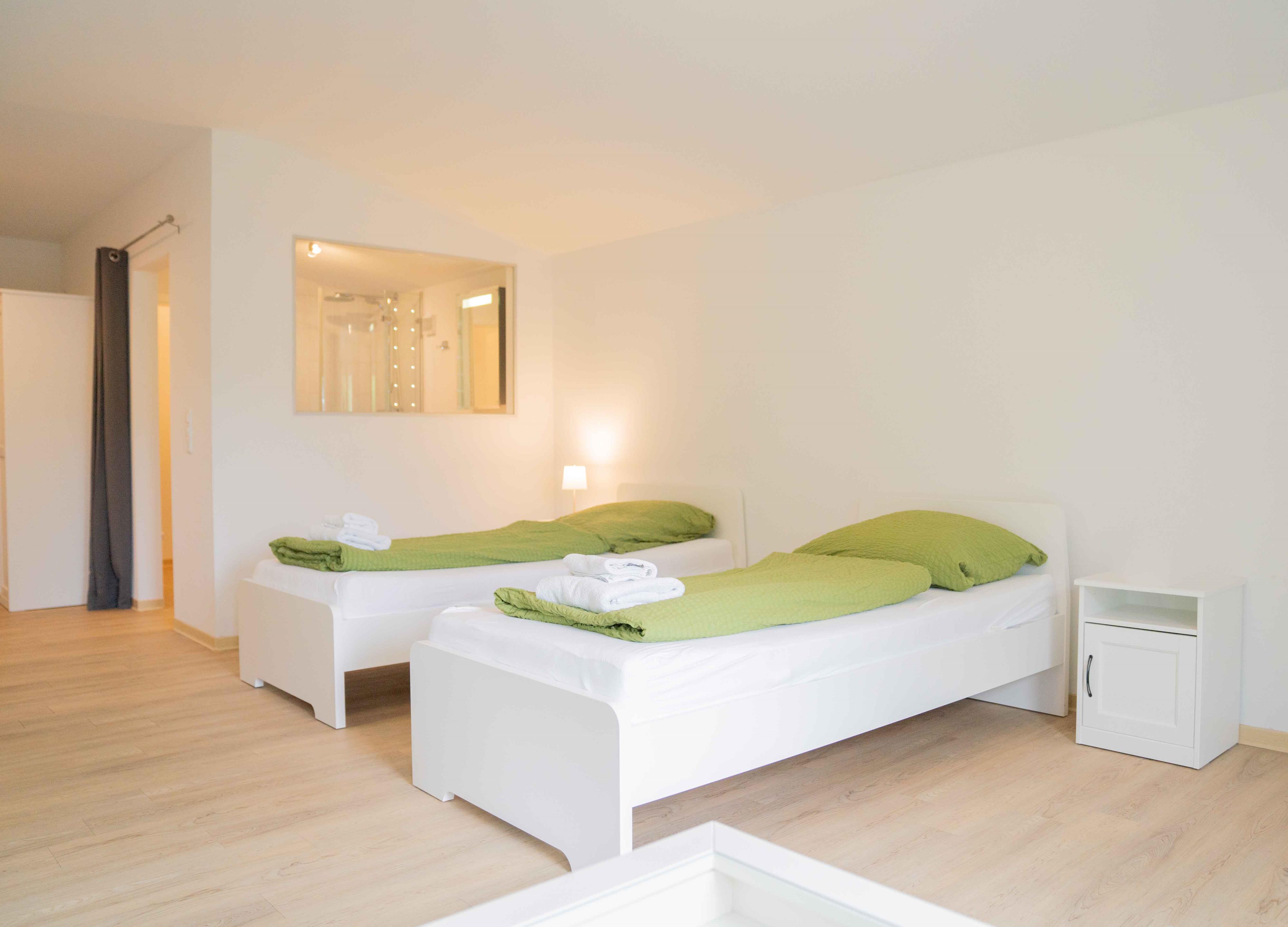 Alles drin: Kompakte Wohneinheit mit kombiniertem Wohn- und Schlafbereich – perfekt für Einzelpersonen oder Kollegen, die sich gut verstehen (max. 2 Personen).