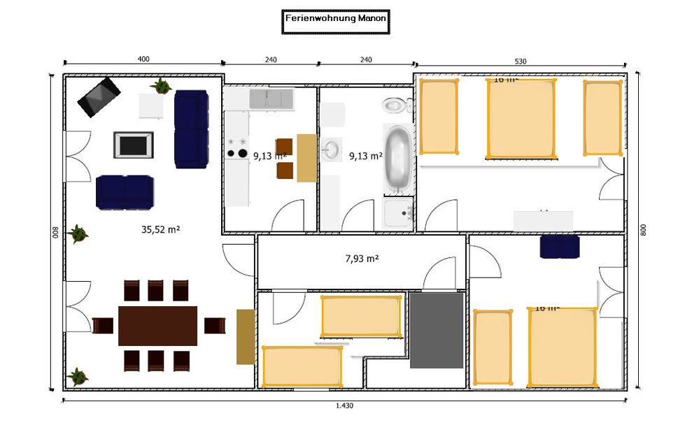 Herzlich willkommen in der Wohnung Manon! In ruhiger, dörflicher Lage in Rabenkirchen erwartet Sie eine Unterkunft, die vor allem eines bietet: Platz. Mit einer durchdachten Aufteilung, die Wohnen, Essen und Schlafen entzerrt, ist diese Wohnung die perfekte Lösung für alle, die auch im Urlaub oder auf Montage nicht auf Weitläufigkeit verzichten wollen.
