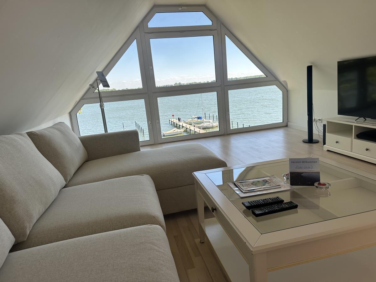 Wohnen & Genießen: Der kombinierte Wohn- und Essbereich bietet viel Raum zur Entspannung. Große Fenster eröffnen Ihnen den Blick auf das maritime Treiben der Segelboote. Zur Ausstattung gehören ein Flachbild-TV sowie kostenloses WLAN. Eine Schlafmöglichkeit für weitere Gäste ist im Wohnraum integriert.